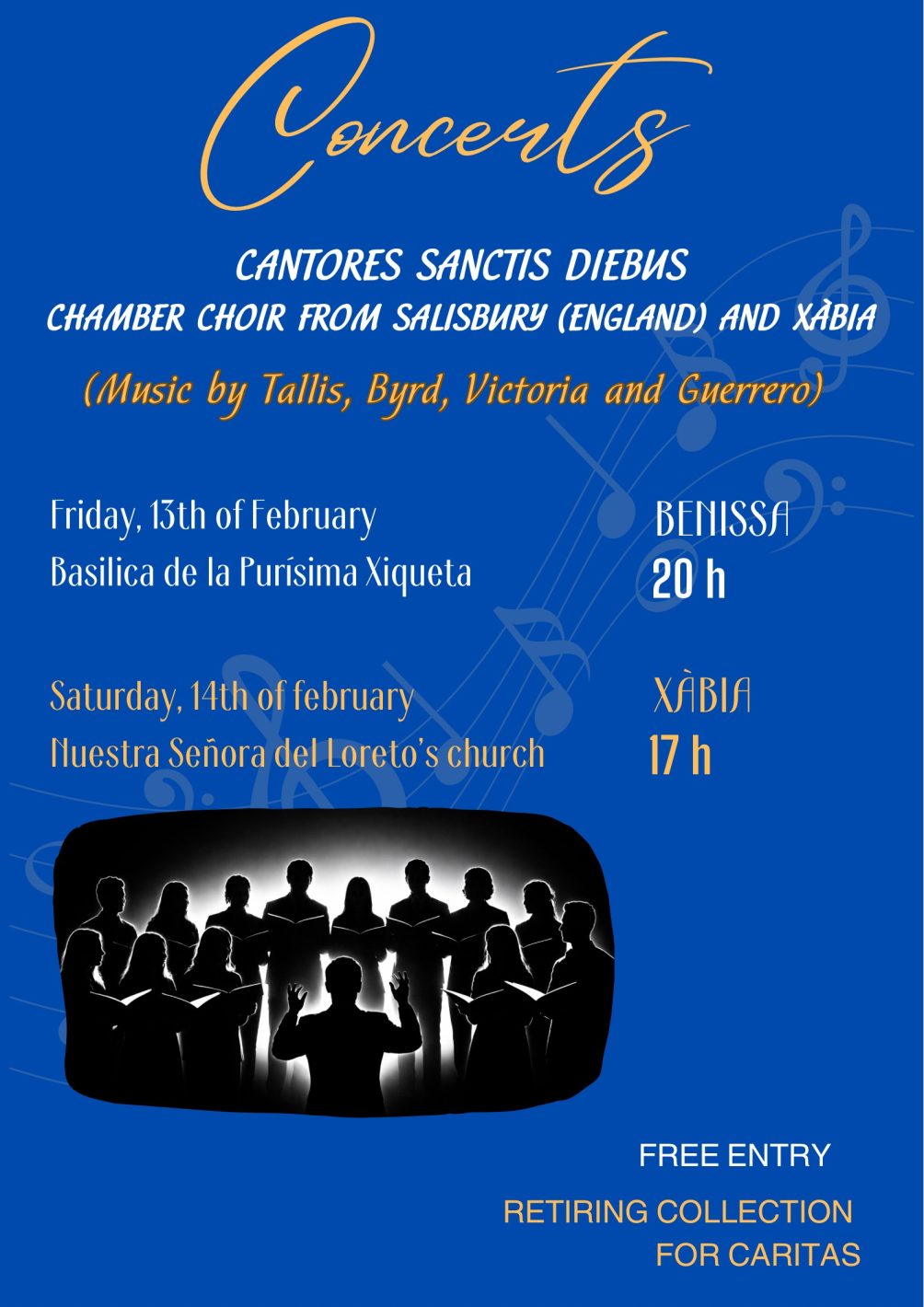 CSD are a long-established chamber choir based in Salisbury, UK, specialising in Renaissance music, particularly English and Spanish, by composers such as Tallis, Byrd, Victoria and Guerrero. They have been visiting the Costa Blanca since 2010, giving concerts in Xabia, Pedreguer, Vall de Laguar, Altea. This February will be Tour No. 27. They are singing two concerts: